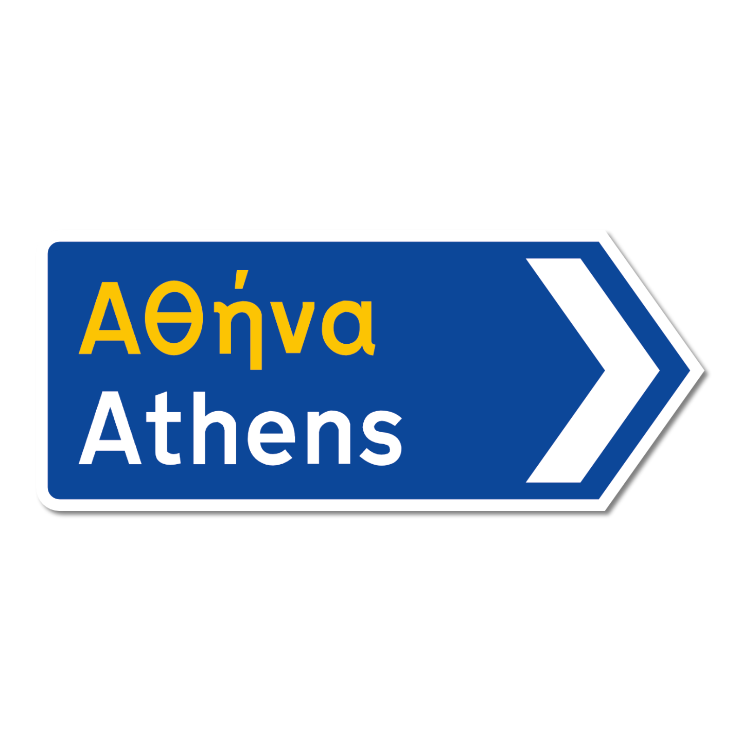 Der Artikel "Athen Griechisches Verkehrsschild" ist den echten griechischen Straßenverkehrschildern mit original Schriftart nachempfunden.