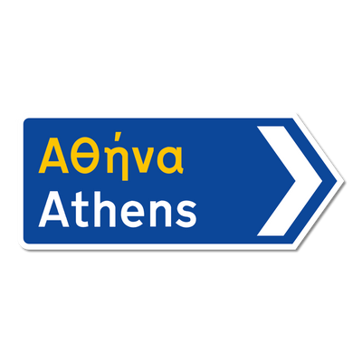 • Nachbildung griechischer Verkehrsschilder mit originaler Schrift